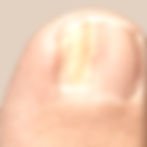 der Streifen ist farblich nicht homogen und wird zur Nagelbasis dicker